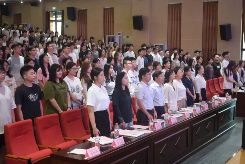 “全体起立,奏唱国歌!”在庄严的国歌声中,全体人员起立,本次师生见面会正式拉开序幕。