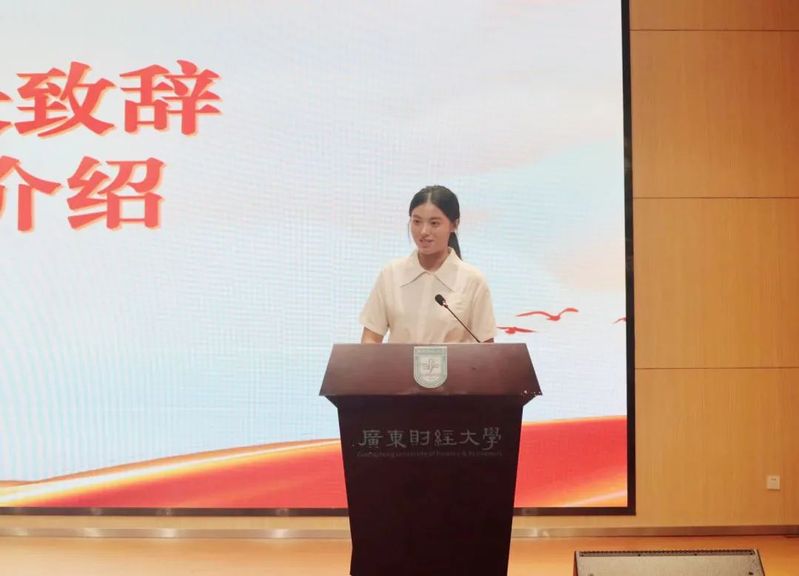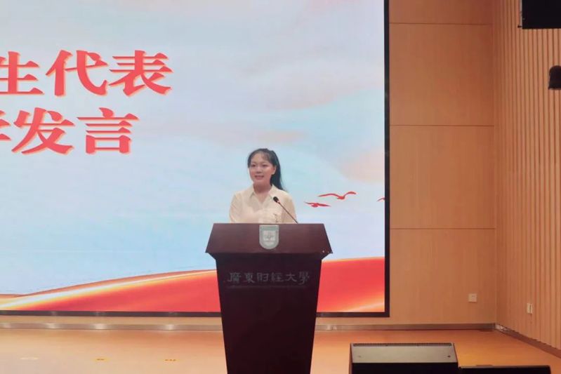 2024级税收学周欣怡同学作为本科生代表发言。在发言中周欣怡强调了校园文化和学校教学质量对学生成长的重要性,并感谢学院提供的优质教育资源和学习环境。同时,她期待在学院的培养下,不断提升个人专业能力和综合素质,增强实践能力,勇敢追梦,探索未来,不忘初心,以广财为起点去奋斗。