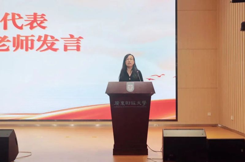 财政系主任朱翠华老师作为教师代表发言。朱老师首先对新生的到来表示欢迎,并对同学们高中的努力表示认可。朱翠华老师对新生提出了三点建议:一是要积极面对挫折和挑战,培养自强不息的精神;二是要尽快适应大学校园的学习模式,不要闭门造车埋头苦读,要敢于实践,树立明确的目标并为之努力;三是要减少对手机的依赖,少划屏、多读书以增加知识储备。她鼓励新生要珍惜大学时光,不断提高自身的专业能力和综合素质,收获美好充实的大学生活。
