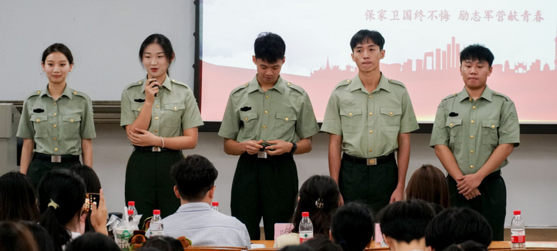 在答疑环节,五位退伍复学军人详细解答了关于参军入伍的问题。关于如何选择入伍方向,他们指出,入伍方向主要由国家进行分配,但网上报名时的意愿和初期训练的排名也会有一定影响。此外,他们还分享了当初选择入伍参军的初心和使命,希望能展现青年一代的担当和报效国家的愿望。他们坦言,部队的经历能够提升个人的适应能力和自律性。他们鼓励有意向参军的同学,要更加努力学习,克服困难,坚持自己的选择。