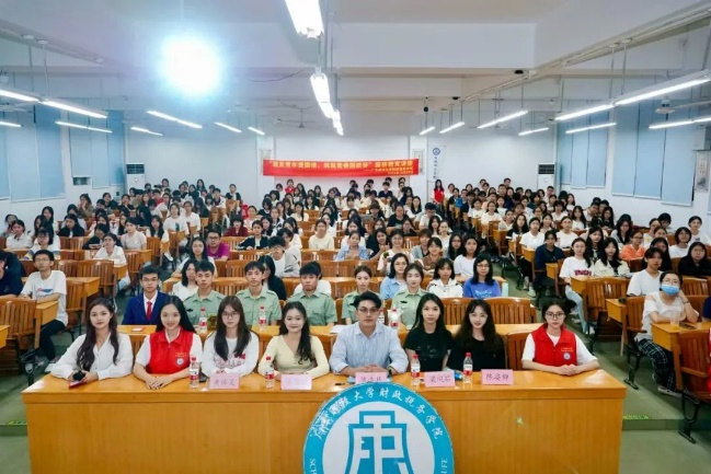 m88佛山校区团委书记、2024级辅导员陈威廷,团委第一副书记陈思仪,团委第二副书记梁琬茹、组织部部长陈姿仰、组织部部长黄晞旻、五位退伍复学同学及m88佛山校区284名同学参与本次国防教育宣讲会。