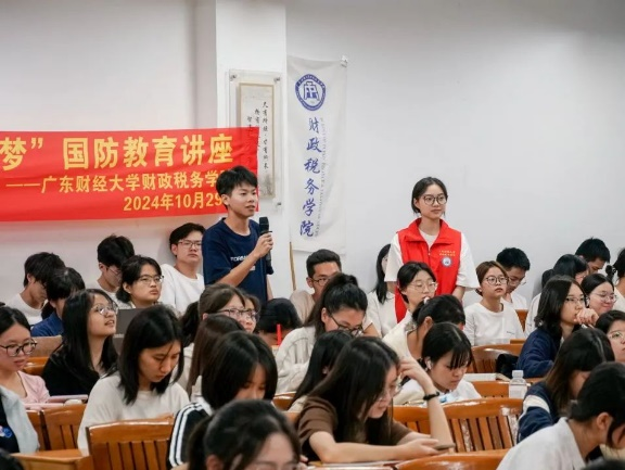 2023级资产评估一班的朱凯健曾服役于武警广东总队机动支队,负责处置突发事件、反恐等任务。他向我们介绍部队日常训练内容,涵盖攀登、无人机操作、射击等。在训练之余,士兵们也会展示才艺,举办火锅、烧烤等活动。他认为,大学生可以用知识和热血为国防贡献力量。