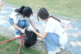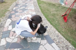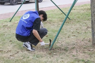 在崔晓莹老师和黄迪老师的带动下,学生志愿者们戴上手套,拿起除草工具,用实际行动为校园风光贡献属于自己的一份力量。有细心除去杂草的同学,有清扫落叶的同学,有拿着垃圾袋负责为大家收拾杂草垃圾的同学,大家各司其职,在这片草地流下美好的汗水,给学校带来一片整洁舒适的绿地,为校庆增添属于财税的光彩。