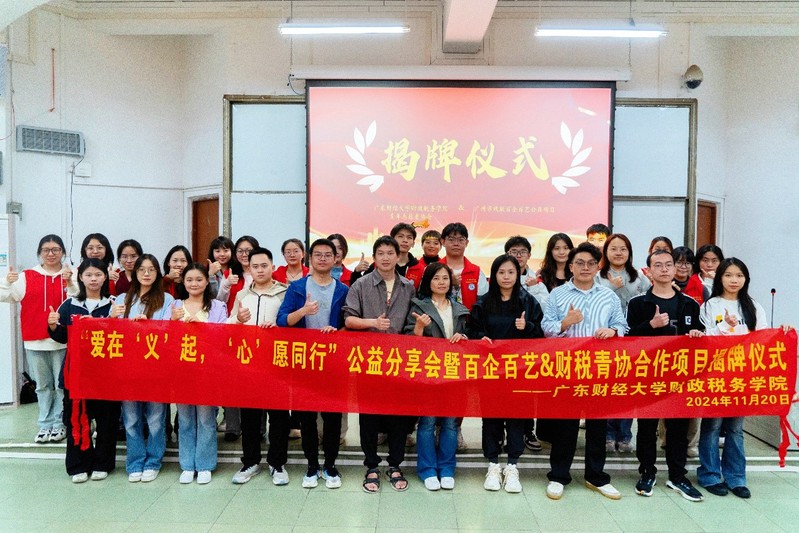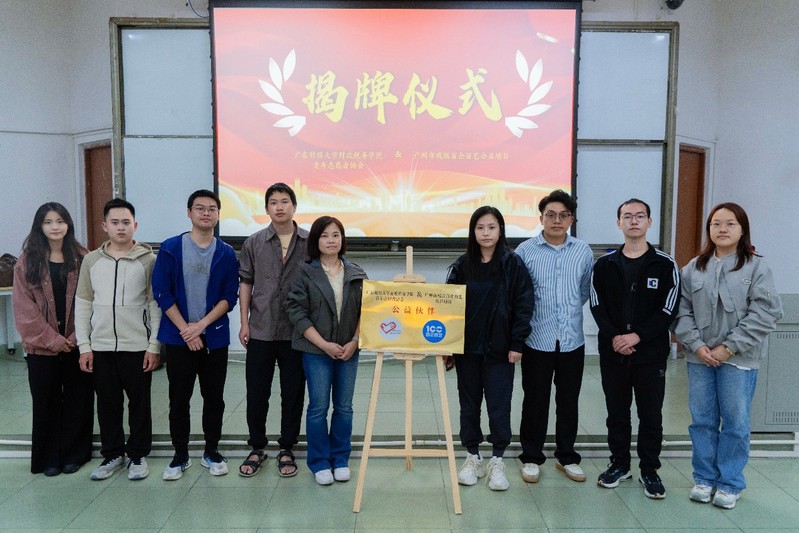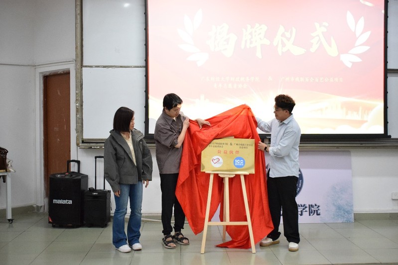 m88佛山校区团委书记、24级辅导员陈威廷老师与百企百艺公益项目核心志愿者苏赞、林琳老师共同揭牌,标志着m88青年志愿者协会与百企百艺公益项目的志愿服务合作正式达成。
