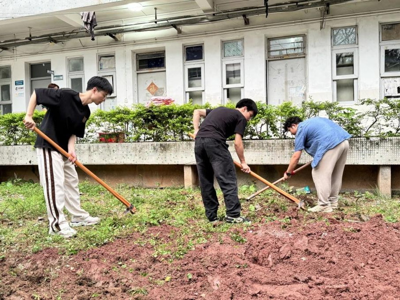5月22日,紫薇苑“一站式”学生社区农耕园的开耕仪式如期举行。尽管天气闷热,但同学们的热情丝毫不减,他们分组合作,在荒瘠的土地上展开了辛勤的耕耘。农耕园内,同学们认领了自己的耕作区域。他们挥锄头、挖土坑、播种子、浇清水,每一个动作都充满了对农耕文化的尊重和对自然的敬畏。同学们在实践中学习到了农业知识,体验到了农耕的辛苦与乐趣。