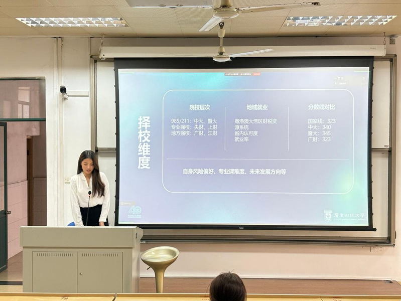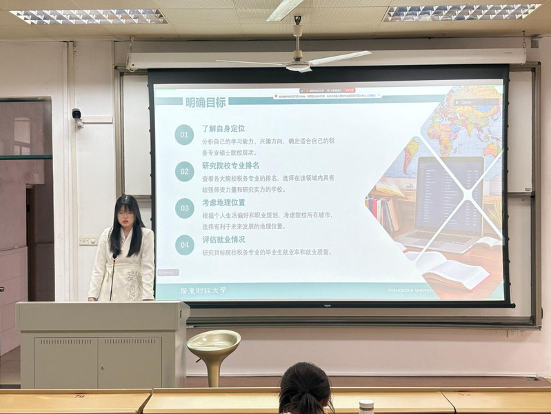针对同学们的不同需求,本次活动特别邀请了m882024级财政学硕士研究生蔡欣弘、税务专业硕士研究生周文慧以及资产评估硕士研究生孙启畅到场为同学们做备考分享。三位同学分别从选校择校、备考时间安排、使用的辅助资料以及心态调适等方面,结合自身实际经历为同学们做了一场精彩的分享。