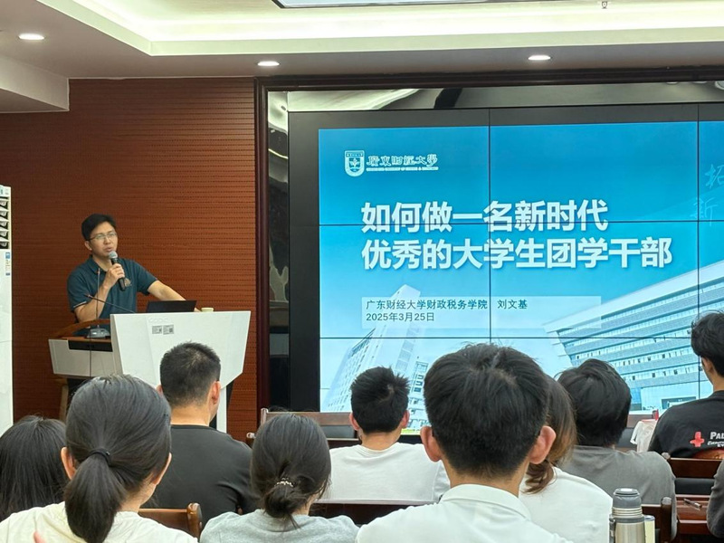 青年工作,抓住的是当下,传承的是根脉,面向的是未来,新时代的青年工作必须坚持党的全面领导。为贯彻落实习近平总书记关于青少年和共青团工作的重要指示精神,团结带领广大团员青年开拓创新、锐意进取,在建设大湾区一流财经大学的新征程中贡献青春力量,3月25日,m88党委书记刘文基以《如何做一名新时代优秀的大学生团学干部》为题,为学生讲授了一场生动的思政课。来自广州校区团委学生会常委、各部门负责人、各班班长、团支书以及辅导员助理等学生干部共50人到场聆听学习。