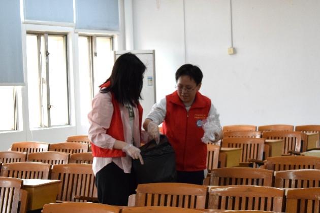 走进教学楼区域,志愿者们分工合作,有的同学认真擦拭讲台,有的清理课桌抽屉里的垃圾,还有的收集散落的纸屑。雷锋精神在志愿服务活动的每一个细节中传承,成为春日校园里的一道亮色。