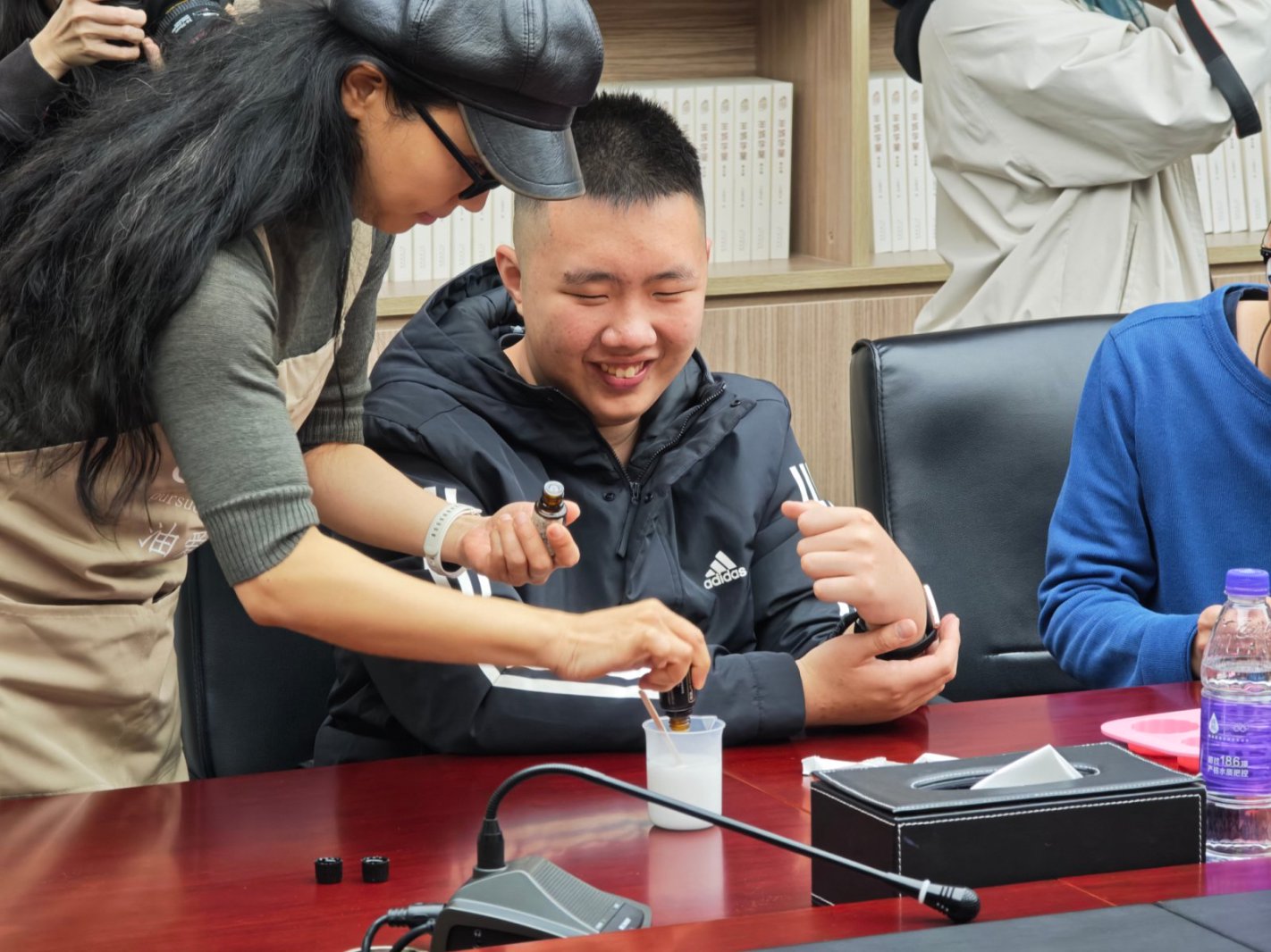 广图活动室内,一场别具乐趣的手工皂工作坊活动正热火朝天地进行着。手工坊老师讲述了他们想要“为世界带去疗愈的力量”的理念,一步一步指导心青年们如何挑选精油、制作手工皂、香皂脱膜等步骤。志愿者们在陪伴心青年制作手工皂过程中,体会到他们的作品所蕴含的力量与情感。画面一转,一场朝气蓬勃的亲子趣味运动会接续开展,通过不同的趣味体育游戏,让心青年和普通亲子实现互动与融合。“体育和艺术一样都有奇妙的魔力。它们打破边界、达成协作和交流,让改变发生。”来自曼朗心邻儿童青少年心理成长中心的心理老师姚静雯说道。