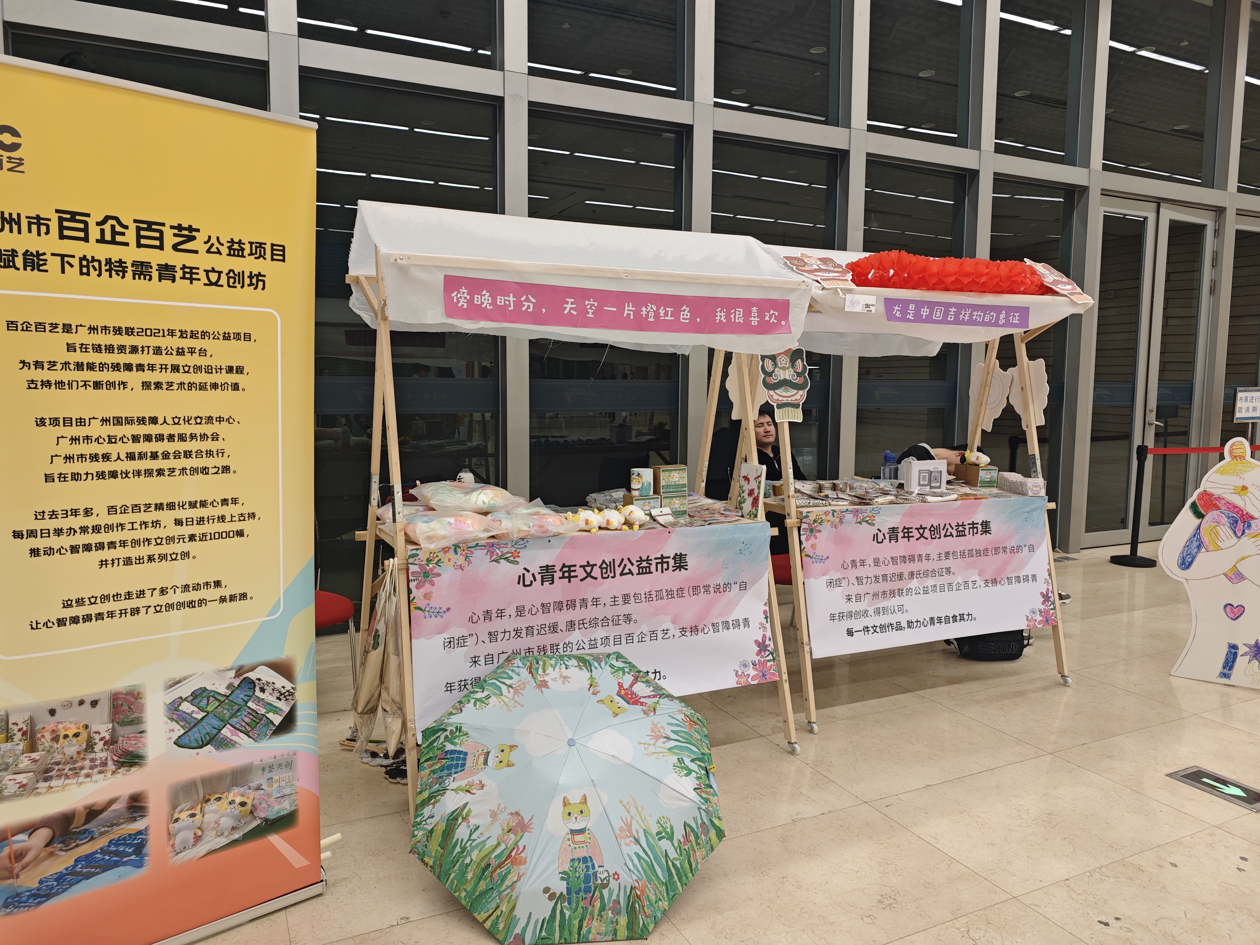 活动现场设置了文创售卖摊位,文创产品均来自广州市残联百企百艺公益项目,由心智障碍青年们的画作衍生设计制作而成。每一件文创产品,都是一个让更多人看见心青年们不一样的价值的切口,都是一件艺术与公益的完美结合体。