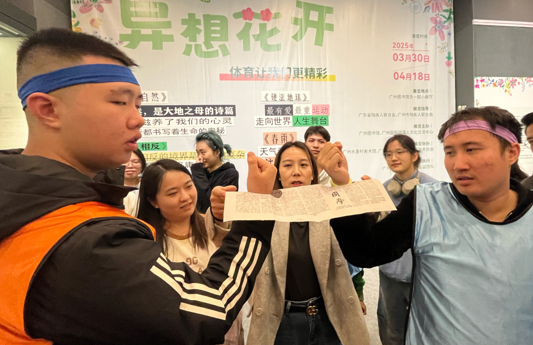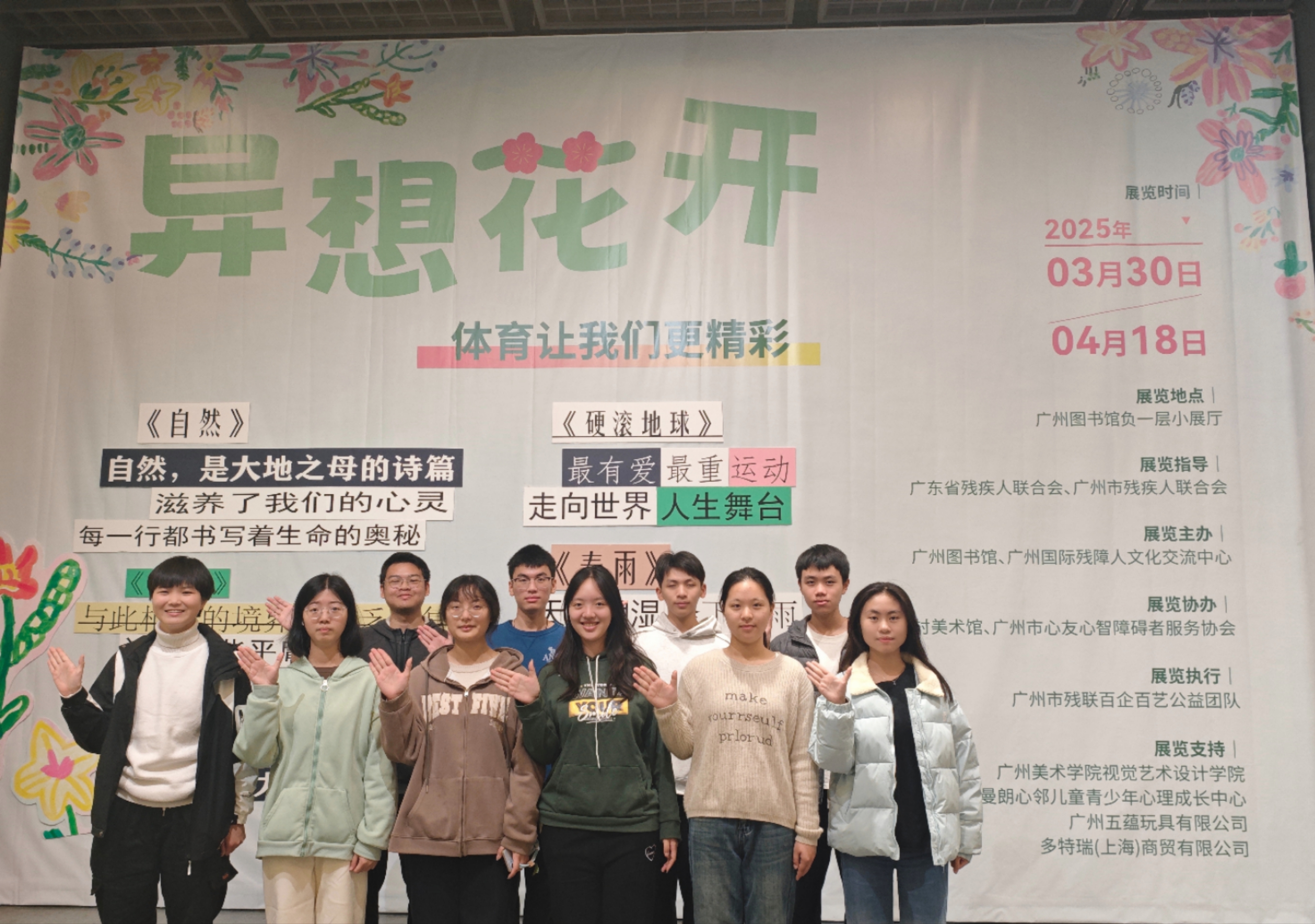 3月30日上午,财税青协带领志愿者从佛山校区赶往广州图书馆,协助完善布置广州市残联百企百艺公益项目举办的“异想花开:体育让我们更精彩”心青年公益艺术展。