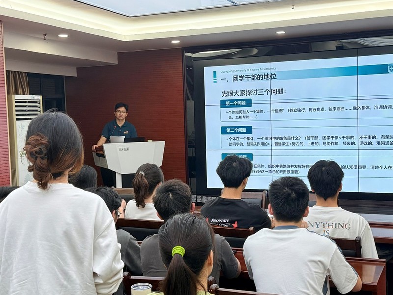 课程伊始,刘文基以“个体如何融入集体组织?”“个体在集体中的角色定位是什么?”“如何认清自身地位并发挥作用?”三个问题引发思考,结合学生代表发言提炼出“积极融入-主动作为-清晰认知”的成长路径。