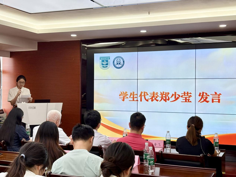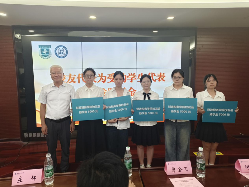 会上,崔晓莹宣读了受助学生名单,校友代表为获得助学金的学生代表颁发助学金。2025年校友基金会为42名家庭经济困难学生发放校友助学金共计150000元。