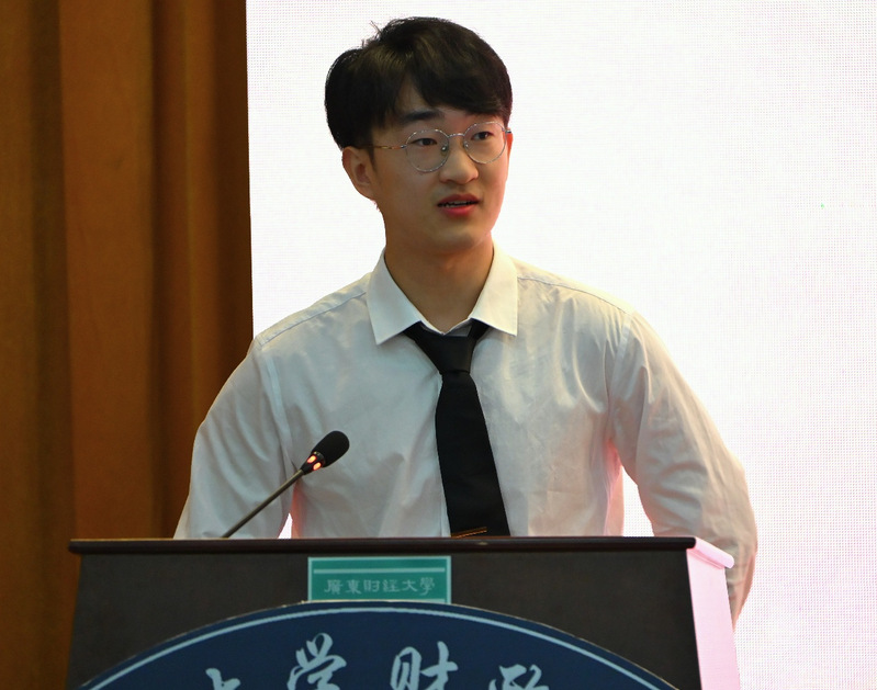 硕士生考博代表王培圣表示自己在广财求学的这段日子里,无论是在生活中、学习中经常感受到老师的关心和同学们的帮助。这些感人的场景组成了他对财税人团结互助、拼搏图强,敢于争锋的深刻烙印。他表示自己会在新的平台上继续秉承着财税人团结互助、踏实肯干的优秀品质,以实际行动关心和支持母校的事业发展。王培圣特别向导师姚凤民教授致以诚挚谢意,感恩其在学术与人生道路上的悉心指引;向学院领导、全体教师的关怀帮助表示衷心感谢;对同窗三年相互扶持的同学情谊表示深深眷恋。最后,王培圣祝愿老师们身体健康、工作顺遂,也向全体2025届毕业生送上毕业祝福,祝愿大家前程似锦。